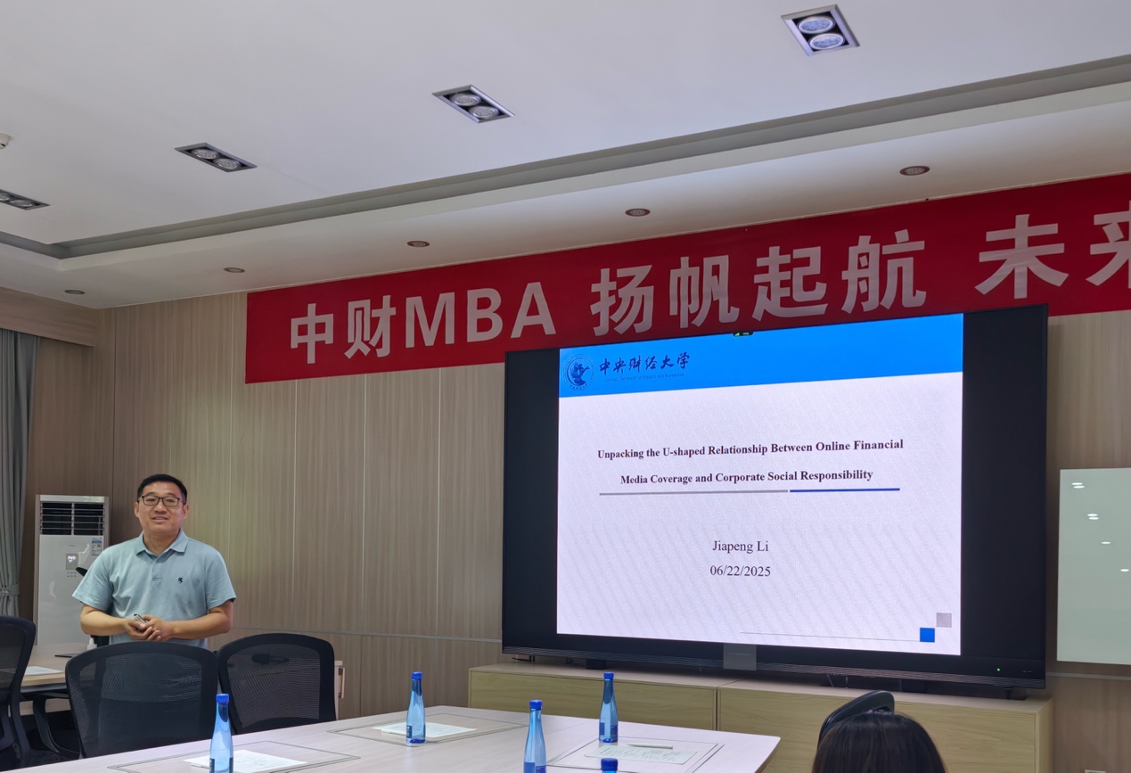 此次会议的分论坛环节由张光利和刘书博老师共同主持,议题涵盖了社会责任、创新创业等热点话题,为经济高质量发展提供多元视角。PA视讯集团官网战略系主任刘书博副教授分享了论文《Identity Regulation Beyond the West: Conformity, Resistance and Dependency in a Chinese Business School》,研究提出了“依附性身份建构”概念,解释全球南方学者在国际权威关系中的特殊困境。西悉尼大学PA视讯集团官网助理研究员彭谞慧分享了论文《Determinants, Interests, and Potential Risks: A Systematic Review of Corporate Water Responsibility Management》,研究通过系统地回顾了Scopus和Web of Science数据库中的105篇研究文章,总结了关于企业水责任管理的关键决定因素、潜在风险和未来研究方向。PA视讯集团官网战略系助理教授李加鹏分享了论文《Unpacking the U-shaped Relationship Between Online Financial Media Coverage and Corporate Social Responsibility》,研究通过考虑媒体作为信息中介和舆论监督者的角色,发现网络财经媒体报道对企业社会责任的影响表现为U形关系,有助于帮助公司利用媒体进行更有效的 CSR 沟通。