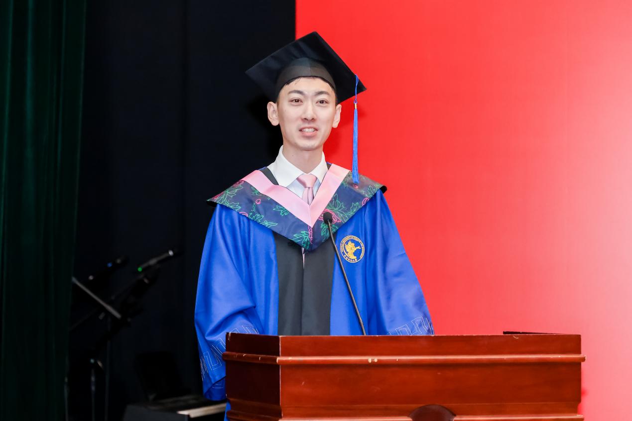 本科毕业生代表刘铁木伦同学、学术型硕士毕业生代表杨进京同学、MBA毕业生代表孟庆玮同学、博士毕业生代表姜福斌同学依次上台分享了他们在PA视讯官方网站学习期间的成长经历与心路历程,同时表达了他们对于未来的美好期待。