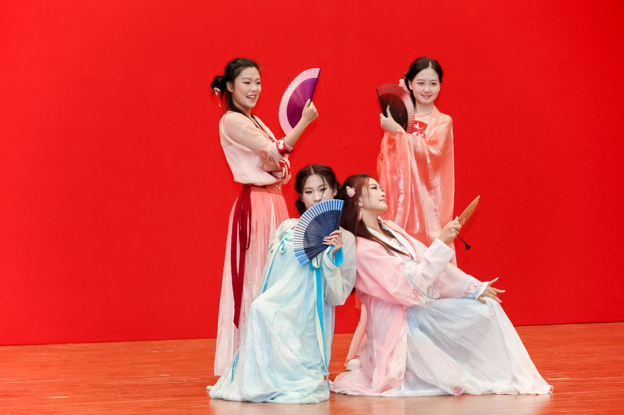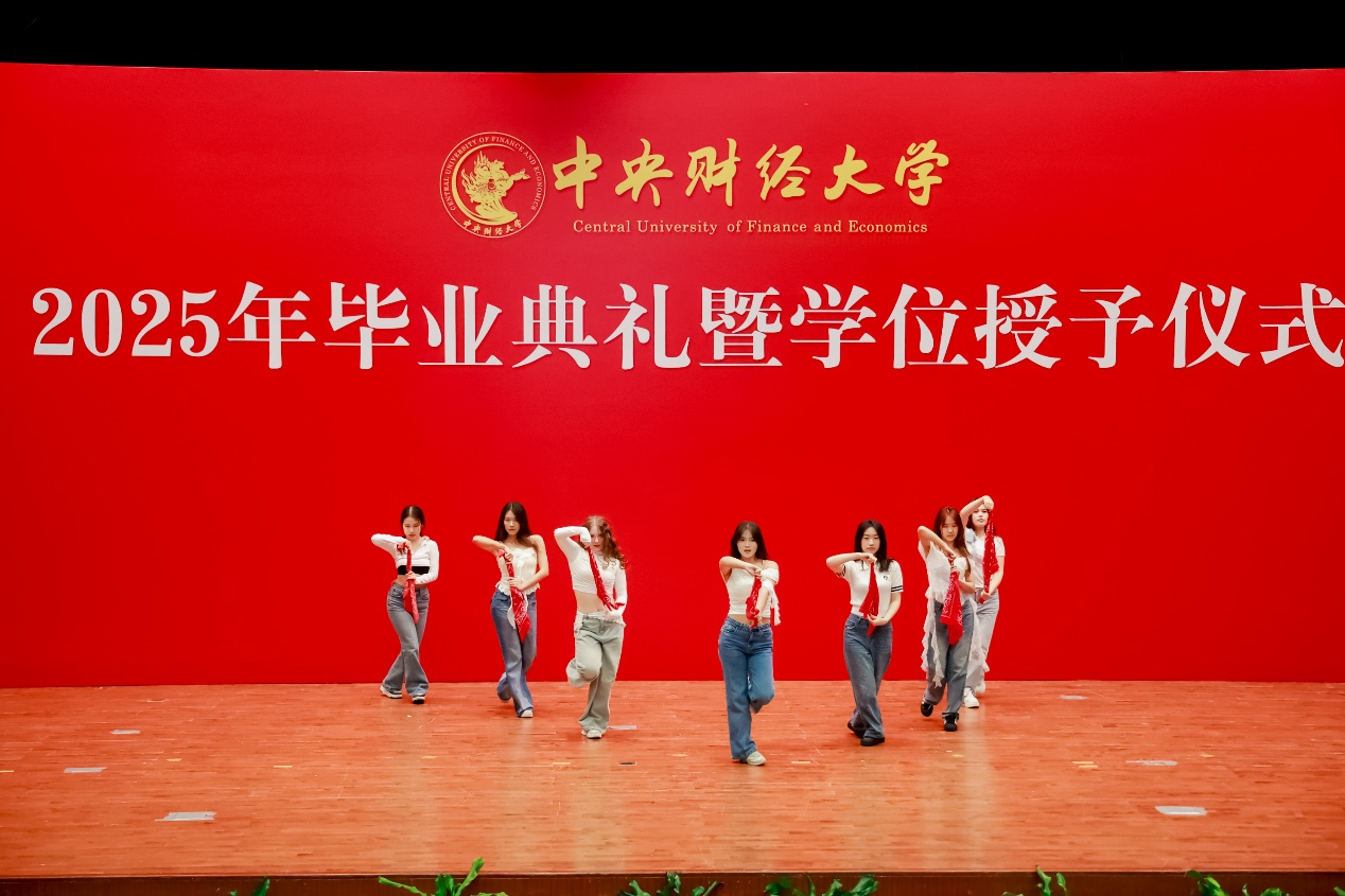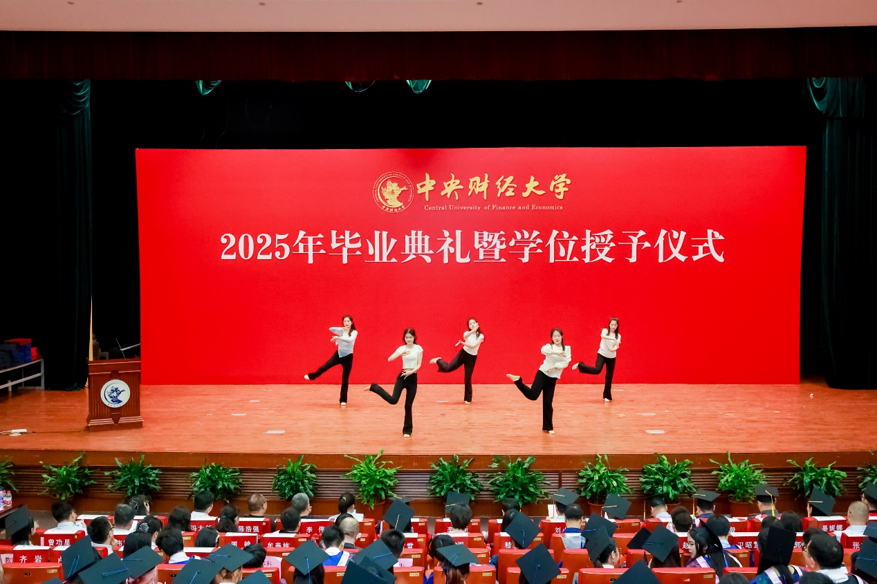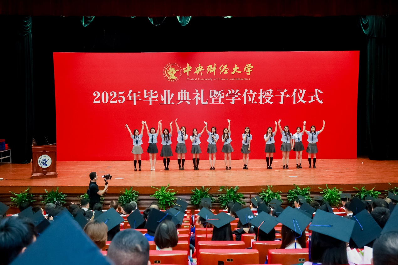 典礼开始前的暖场环节,同学们表演了舞蹈《玫瑰人生》《采薇》《寄明月》和歌曲《致我的朋友》《十二花神 花满中财》和《献给毕业的歌》等节目,现场掌声雷动,氛围热烈。