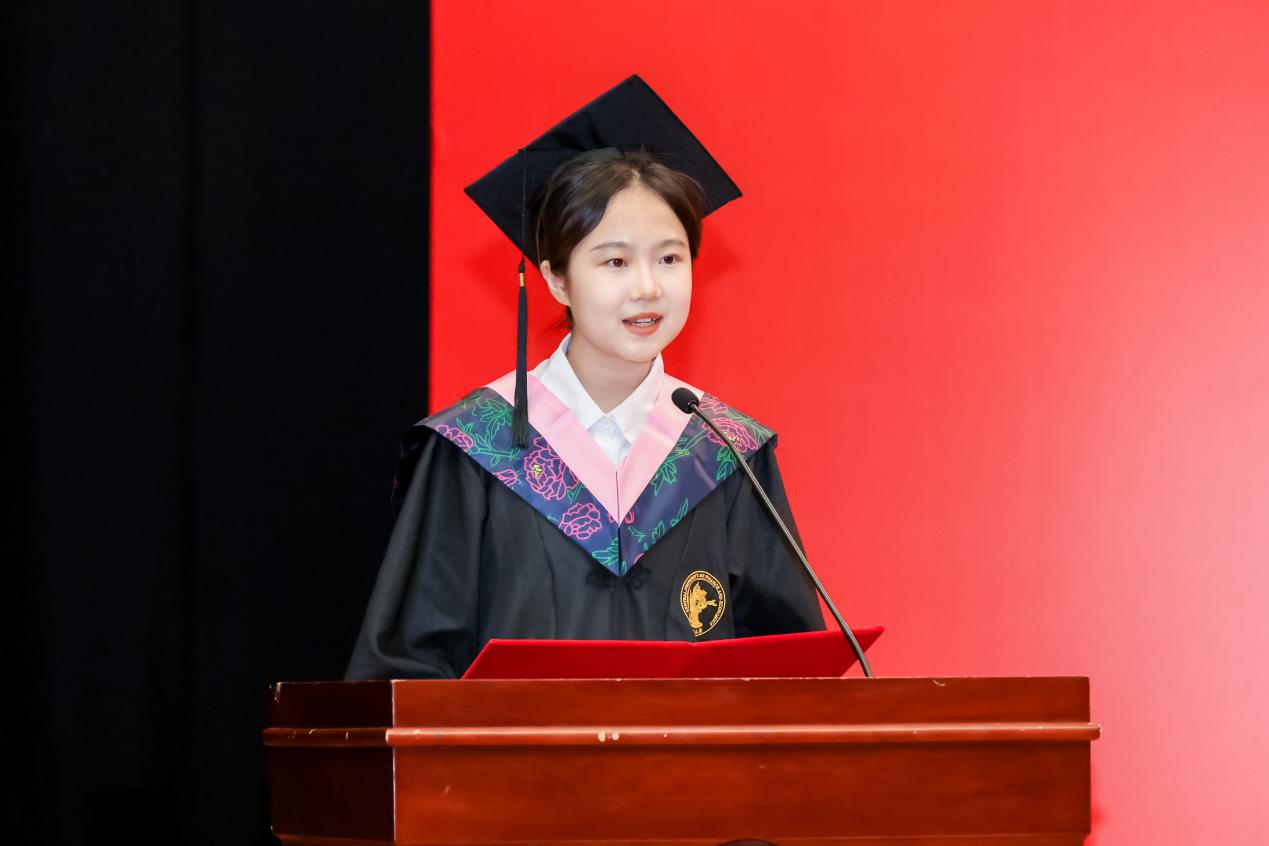 学术型硕士毕业生杨进京作为员工代表发言。她感慨道,这一路走来,每一步都磨砺了意志,提升了能力,正是无数次的尝试与失败铸就了今天的自己。在未来的日子里,她将以PA视讯官方网站“忠诚、团结、求实、创新”的校训为座右铭,并祝福各位追梦的中财人山水有相逢,来日皆可期。