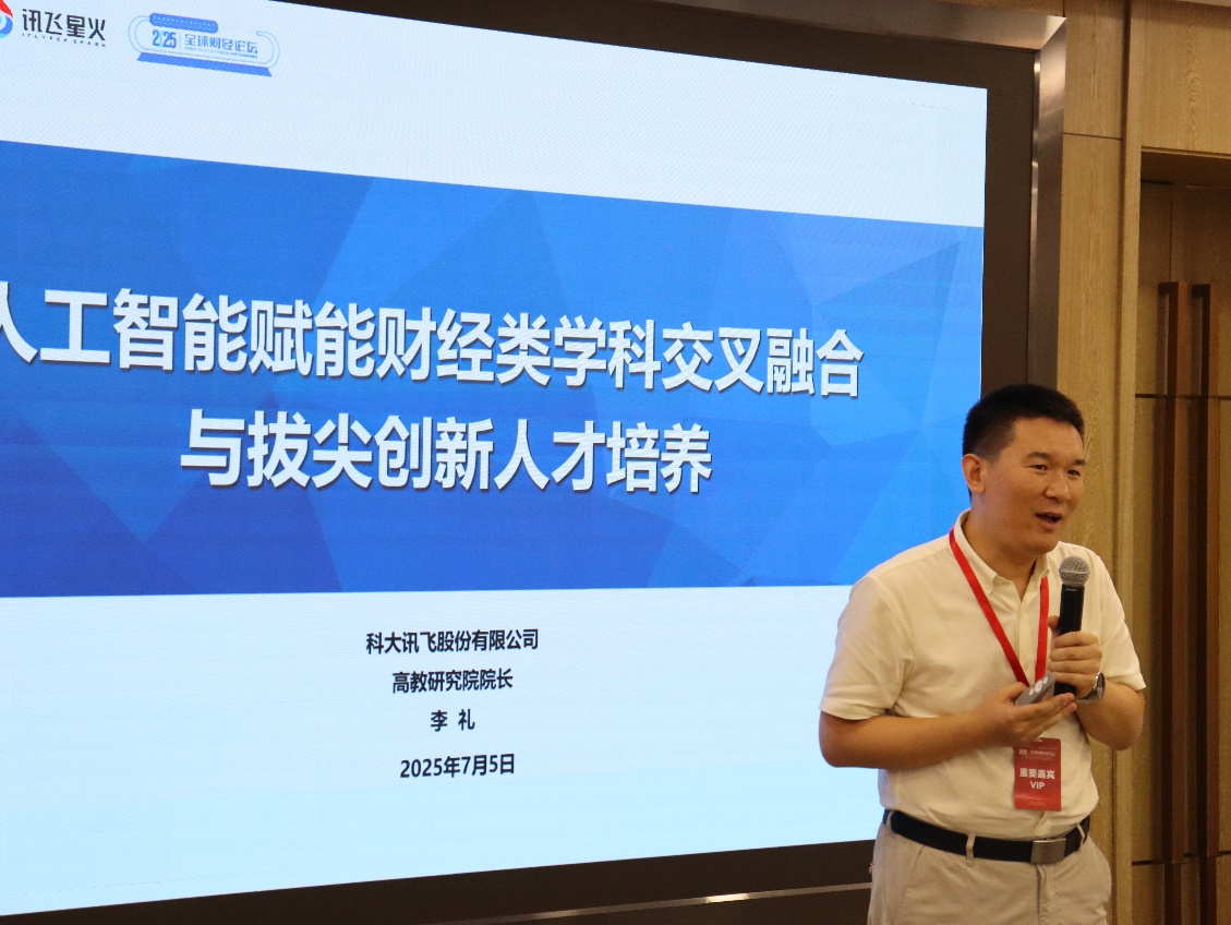 科大讯飞高教研究院经理李礼关注“人工智能赋能财经类学科交叉融合与拔尖人才培养”的话题,分享了人工智能技术赋能财经教育转型的创新实践,提出大模型时代人才培养应更加注重创造力培育。