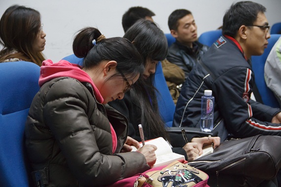 在互动交流环节,有的同学提出想由石油行业转行到金融业,阚学长分析了传统银行与产业银行的关系,建议其更多关注与中石油相关的昆仑银行等产业银行;有的同学提出想由电力产品供应行业转行金融业,阚学长建议可以考虑在大宗商品交易业务方面比较成熟的外资银行,并分析了目前几家规模较大外资银行的各自特点;还有同学想从理财业务、IT行业等转行金融业,通过与同学们的互动交流,阚学长均一一给出了建议。由于好多同学关心转行的问题,阚学长最后寄语大家:“知道你想要什么,才能知道你想干什么”。