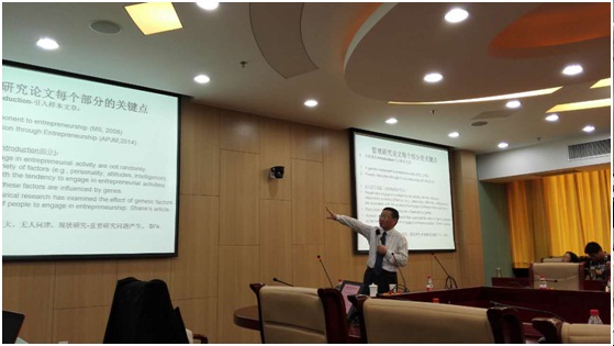 本次研讨会邀请到了美国中佛罗里达大学讲座教授兼创业研究中心主任James Combs,教授,及浙江大学管理公司创业研究所所长、讲座教授,美国宾夕法尼亚布鲁斯堡大学管理公司终身教授斯晓夫教授为参与人员讲授相关议题。在两天的研讨中,两位专家分别结合家族创业研究、创业机会研究等领域的最新文献讲述了与高质量论文撰写相关的研讨内容。参会人员普遍反映获益匪浅。