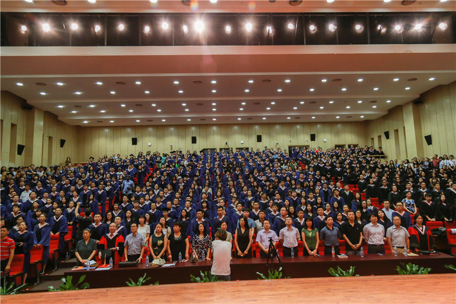 在庄严的国歌声中,PA视讯集团官网2016届毕业生毕业庆典暨学位授予仪式正式开始。
