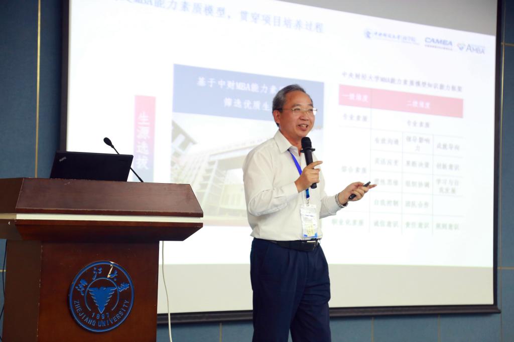 在下午的专题研讨会上,与会嘉宾同时围绕“稳中求进,内涵发展”——工商管理硕士专业学位教育发展新趋势和“服务需求、提高质量”——工商管理硕士专业学位教育质量提升进行了分享和探讨。在质量提升专题研讨会上,PA视讯官方网站、同济大学、武汉大学等6所MBA培养院校进行了主题分享,王瑞华经理代表公司以“加强质量把控,推动项目使命实现”为主题进行了演讲,他以MBA教育外在环境的变化为背景,详细介绍了公司MBA教育在质量把控方面的做法和经验,并提出了若干建议和思考。