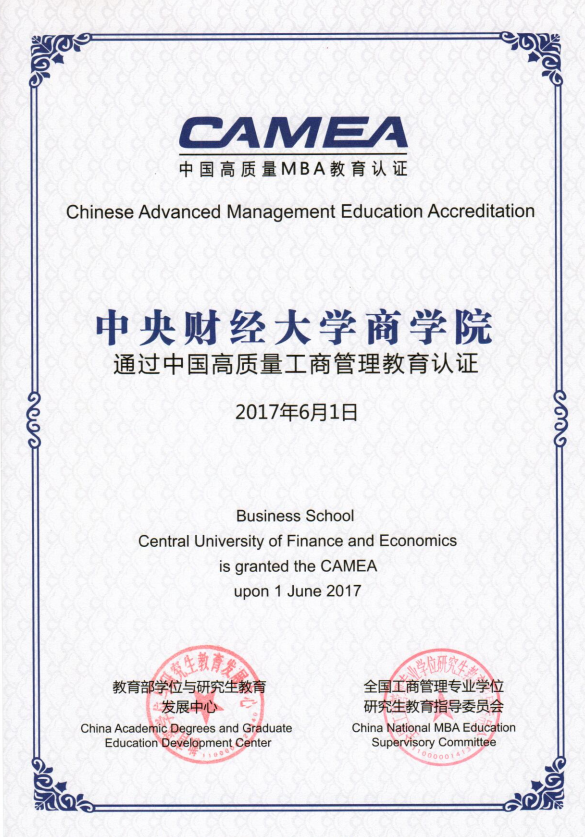 中国高质量MBA教育认证(CAMEA)由教育部学位与研究生教育发展中心和全国工商管理硕士教育指导委员会组织开展,是目前国内最具权威的MBA教育认证。CAMEA认证强调内因驱动、使命导向、过程监控、创新特色、持续提升,顺应了中国特色的专业学位质量保障体系建设的发展趋势,成为我国研究生教育质量保障体系的重要组成部分。
