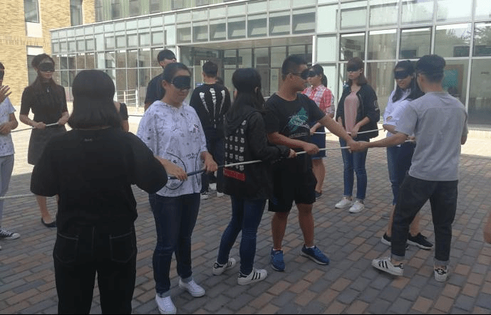 接着,大家又进行了“模拟投资”、“盲人方阵”两个项目。引发了大家对风险、合作、沟通等话题的思考。模拟投资需要大家进行思考,在完成一系列创意的活动之后,一个充满思考性的活动又激发了大家的智慧和思考,理性的思考之后,每一组都给出了凝结团队思考的成果,甚至都要求主持人再进行一组,这是在完全放开约束之后的轻松和陶醉,趣味十足。