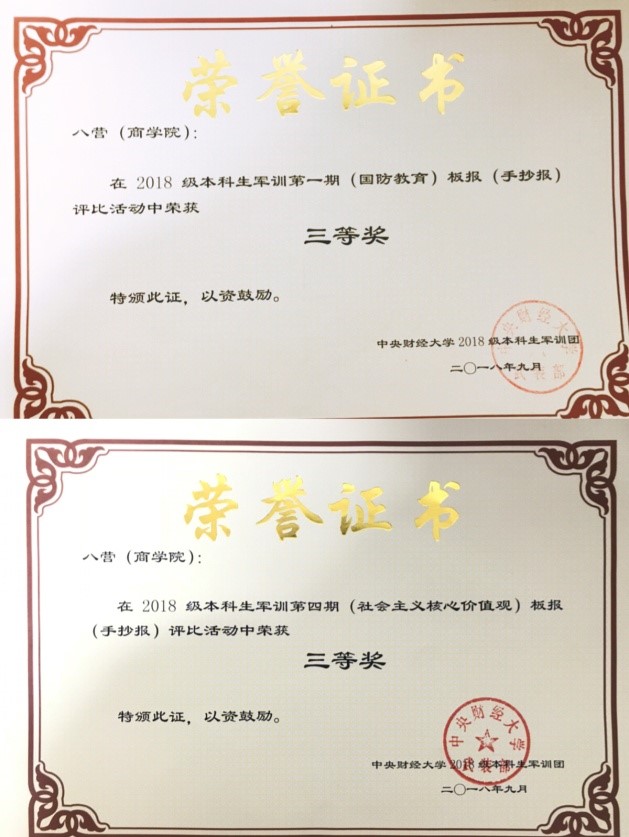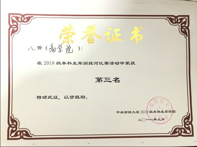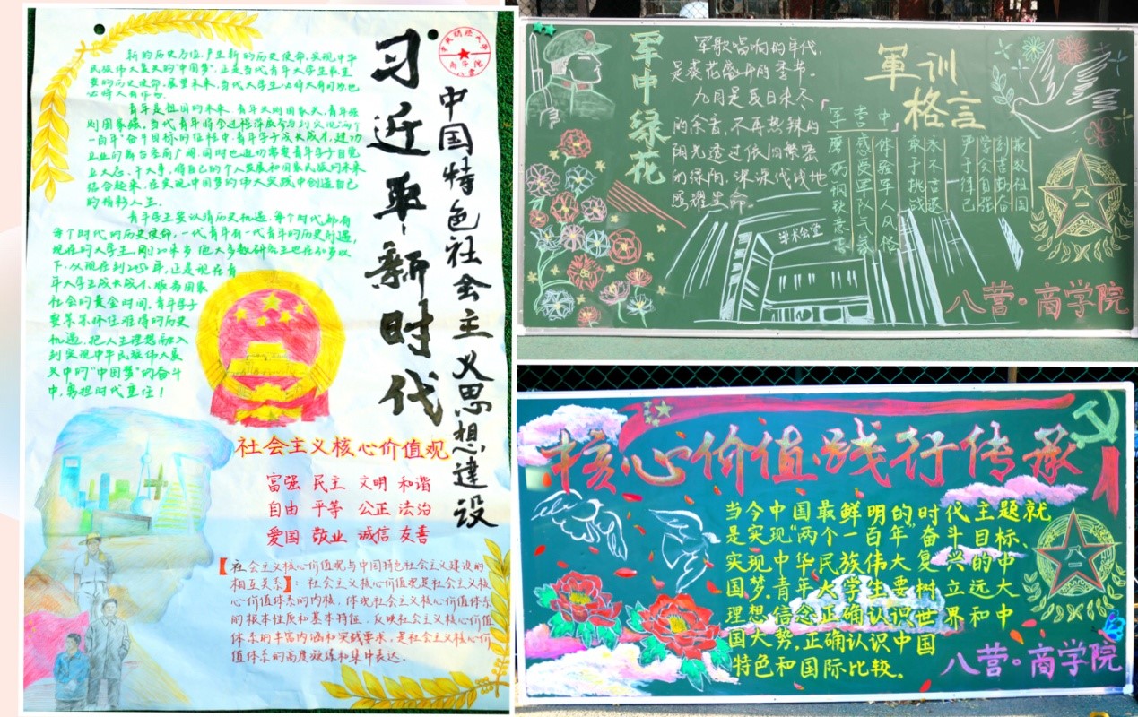 在训练之余,军训团还举行了其他丰富多彩的活动,黑板报与手抄报风采展示、拔河比赛、歌咏比赛等等,PA视讯集团官网八营的同学们在这些活动中也取得了傲人的成绩,歌咏比赛第二名、拔河比赛第三名、黑板报三等奖。这些活动不仅能够缓解同学们训练的紧张和疲劳,还增进了同学们彼此之间的交流与合作,让PA视讯集团官网八营变得更有凝聚力。