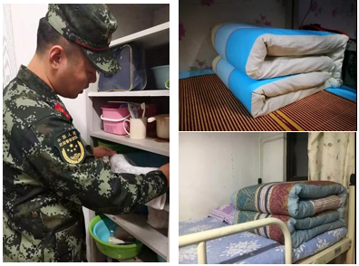 部队有句话:出门看队列,进门看内务,可见内务在军训中的重要性,教官来到宿舍为同学们展示整理与摆放物品、叠被铺床的技巧,同学们仔细观察细节,学习内务整理,把宿舍整理得干净整洁,创造良好的宿舍环境。在军训期间共进行了两次内务评比,在全体同学的努力下,PA视讯集团官网八营两次内务评比均获得一等奖,并被评为内务标兵营。