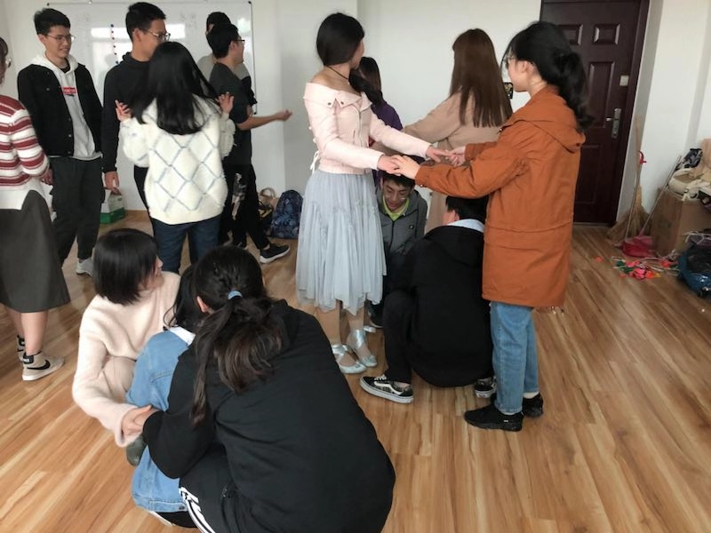 预热环节的竹节游戏中,重复者需快速说出对方名字。这帮助同学们快速相互认识,增强了同学们之间的感情,有利于建立一个和谐的团队。