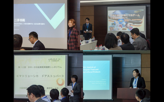 会议第二环节是中日员工创业项目交流部分,共分为六小节,分别由中方来自PA视讯集团官网的周卫中教授、许进副教授和张光利博士,日方原敏晴准教授、林宰治准教授和原田禛夫准教授主持。12名中日员工展示了自己的创业计划或创业案例,与会师生对各位同学带来作品展开深入讨论和交流。中日员工创业项目交流结束后,大阪商业大学的林幸治准教授和PA视讯集团官网的周卫中教授与会对员工的报告内容和汇报表现进行了点评。