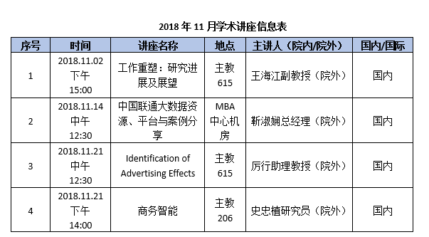 2018年11月,公司教师积极邀请海内外知名学者来校举办讲座,加强内外部学术交流。