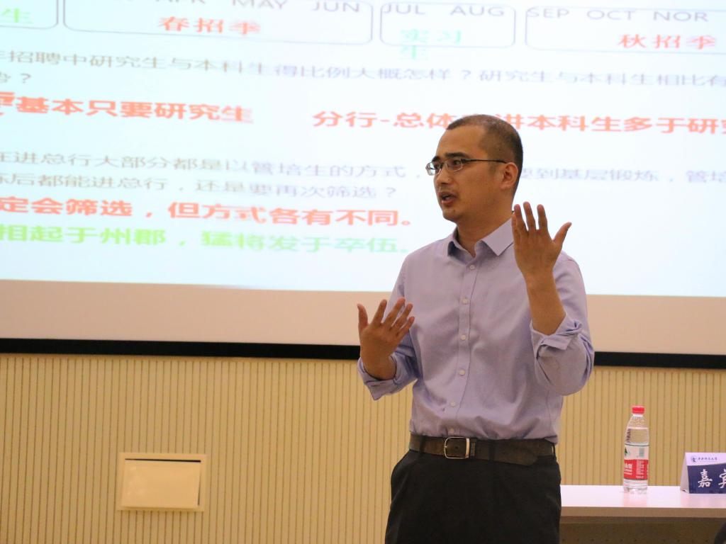 本期讲座以“拨开云雾,银行招聘那些事儿”以主题,潘常鹤员工就银行招聘的话题做出了深入浅出的讲解。