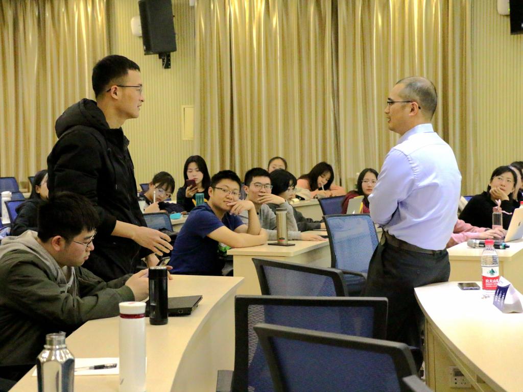 在之后的交流提问环节中,同学们提出了各种问题。对面试笔试需要的准备、无领导小组讨论、学历的重要性、女生在求职中是否存在劣势、什么岗位最具有潜力等问题进行了深度的交流。
