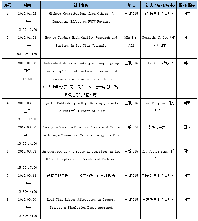 2019年1-3月学术讲座信息表