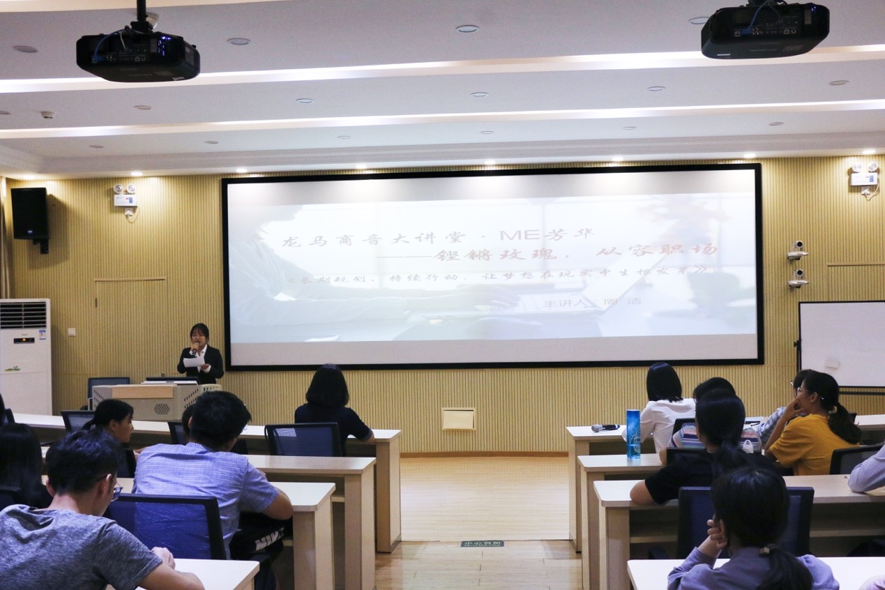 “龙马商音第四期暨ME芳华第三期——铿锵玫瑰,从容职场”讲座于5月29日在MBA阶梯教室举行。本次讲座特邀全国政协经济委员会办公室综合处副处长周洁员工到现场和同学们分享交流,公司党委书记葛建新出席并致辞。