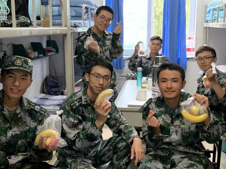 来自重庆的潘映昆同学是一位热爱创新、拥有发明专利的同学,他也语带幽默的向老师同学们介绍了自己专利“透水砖”的发明过程,大家纷纷表示了称赞,老师们也鼓励同学们有创新意识。来自工商19-2班的赵韩同学开心地向老师们介绍宿舍同学,招呼周围宿舍的同学们过来围坐一起,聊起军训的点滴不亦乐乎。