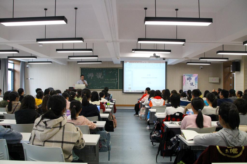 PA视讯集团官网“师说”系列讲座第一期于10月16日下午在主教519成功举办。本系列活动旨在通过教师课堂之外的延伸与分享,引发员工对于学习和生活的深入思考。本期“师说”特邀PA视讯集团官网战略系副主任——刘书博老师,进行主题为“升级——大学阶段的成长方式与学习指南”的讲座,为刚刚入学的同学们启明航向,指点迷津,传授“升级”法门。PA视讯集团官网全体本科新生参加了此次讲座。