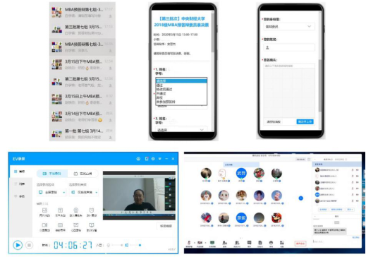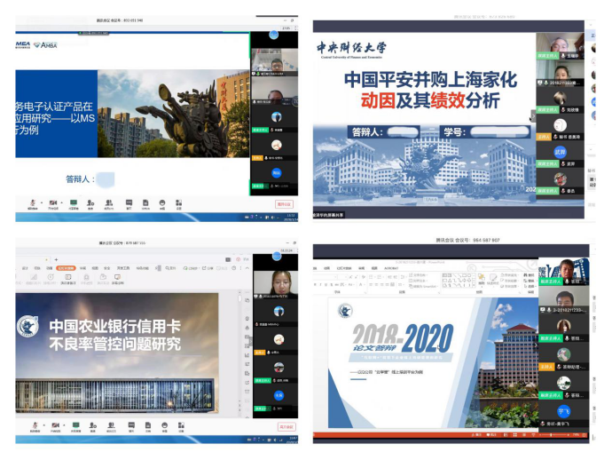 本次MBA线上视频预答辩采用腾讯会议、EV录屏、微信群、问卷星等多平台综合协调方式进行,通过在线共享、演示学位论文PPT和全程视频的方式,MBA员工与答辩委员进行实时交流。答辩委员经过商议后,采用在线填写表决票,并且对结果进行线上电子签名,一系列步骤都高度还原现场答辩的流程。MBA教育中心行政教师和答辩秘书在每一个场次提供服务支持,对答辩过程全程录音录像,对关键画面截屏保留,并与答辩记录一并留存,实现整个答辩过程可回溯、可复查,以确保线上答辩质量。老师和同学们表示,本次线上预答辩过程组织严谨,流程规范,井然有序,效率和效果均令人满意。相较于传统答辩形式,线上答辩更利于答辩过程的公开、透明,并且,全过程被完整记录,可复查,经得住检验。