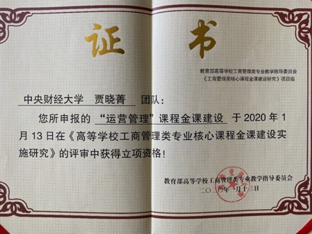 近日,公司《运营管理》课程团队申报的“运营管理”课程金课建设项目在《高等公司工商管理类专业核心课程金课建设实施研究》的评审中获得立项资格。本项目是教育部高等公司工商管理类专业教学指导委员会在全国高校推行工商管理类“一流专业、一流金课”课程建设研究计划的核心课题之一。