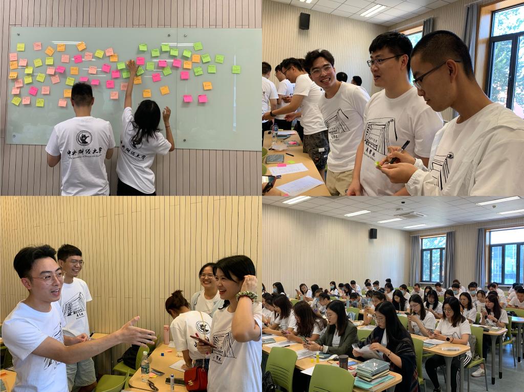 之后,破冰活动进入暖场环节,“扫码搞事情”的小游戏建立了老师和新生之间的网上沟通渠道。林老师又采用“互惠之环”的活动切入主题,引导员工意识到沟通的重要性。同学们主动参与,积极讨论,活动现场热烈融洽。