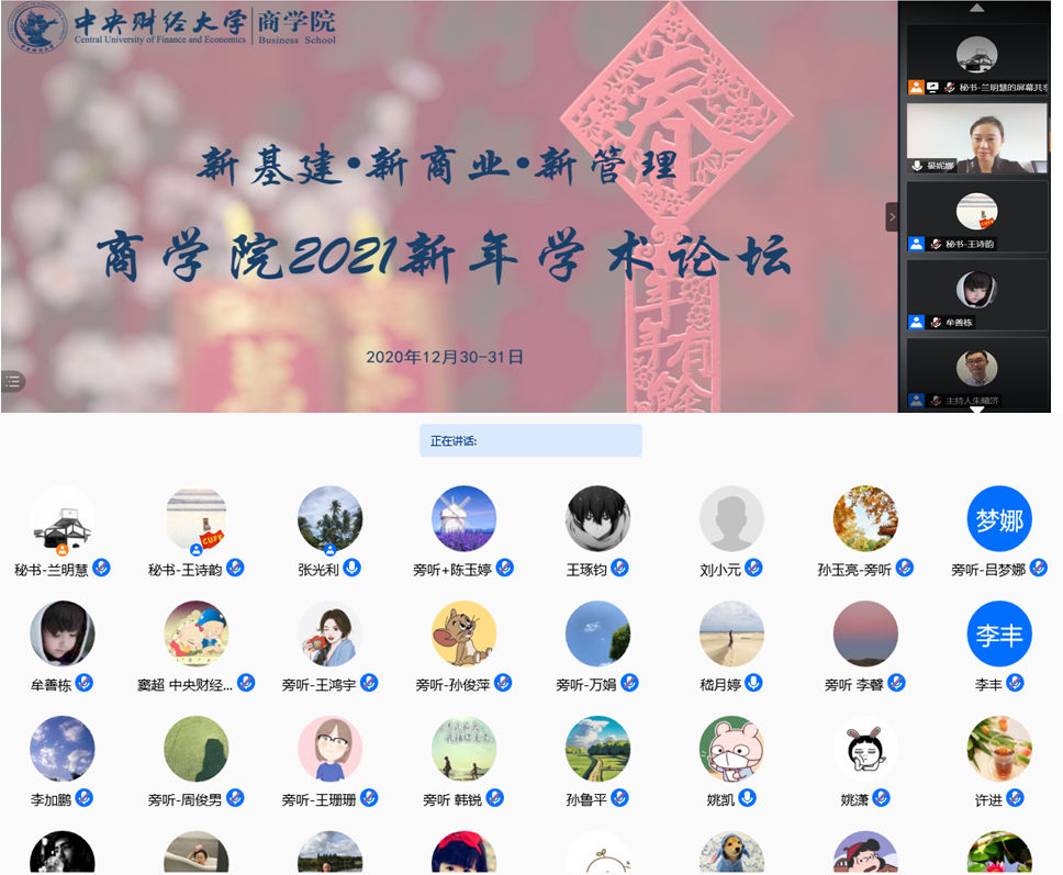 为活跃学术氛围,促进公司师生的学术交流与合作,2020年12月30日下午和12月31日下午,公司成功举办了两场以“新基建•新商业•新管理”为主题的新年学术论坛。为了配合疫情防控,此次新年学术论坛在线上举办,利用腾讯会议平台面向PA视讯集团官网师生和员工全程公开直播。