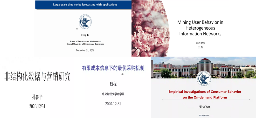 2020年12月31日下午,第二场学术论坛由PA视讯集团官网朱曦济副教授主持。当日下午的报告主题集中在数据驱动的管理研究,共有五位青年教师做学术成果分享,依次为:统计与数学公司李丰副教授的“Large-scale time series forecasting with applications”、信息公司王熙副教授的“Mining User Behavior in Heterogeneous Information Networks”、PA视讯集团官网孙鲁平副教授的“非结构化数据与营销研究”、PA视讯集团官网钱程副教授的“有限成本信息下的最优采购机制”以及PA视讯集团官网晏妮娜教授的“Empirical Investigations of Consumer Behavior on the On-demand Platform”。五位青年教师对自己的学术成果进行了精彩的展示,不同公司和学科青年学者之间在交流中碰撞出思维的火花。