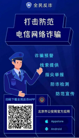 最后请一定记住北京市反诈专线96110,如果您的手机有此号码的来电显示请务必及时接听,因为很有可能您或者您的亲友正在遭遇电信诈骗。