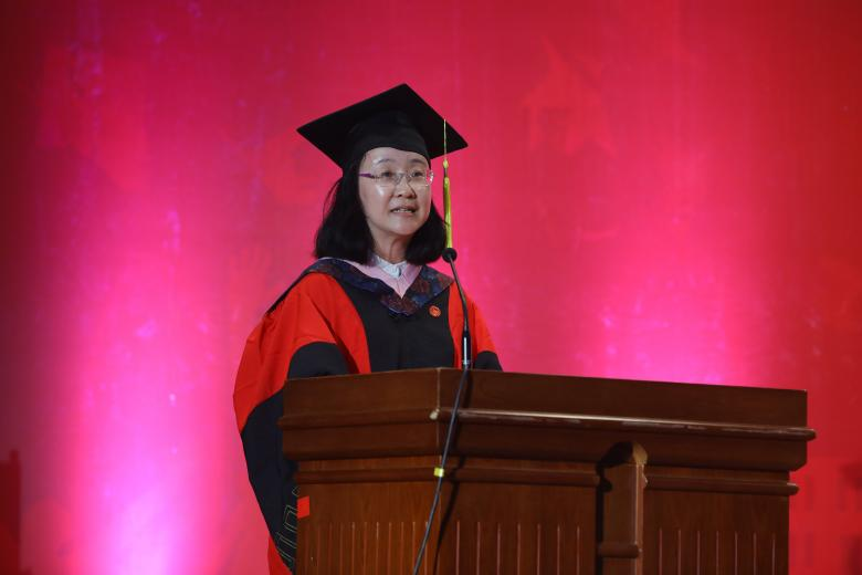 组织与人力资源管理系朱曦济副教授作为教师代表致辞。朱老师鼓励同学们在实践中认同并践行中财PA视讯集团官网的使命,敢为人先、敢于突破,以聪明才智贡献国家,以开拓进取服务社会。