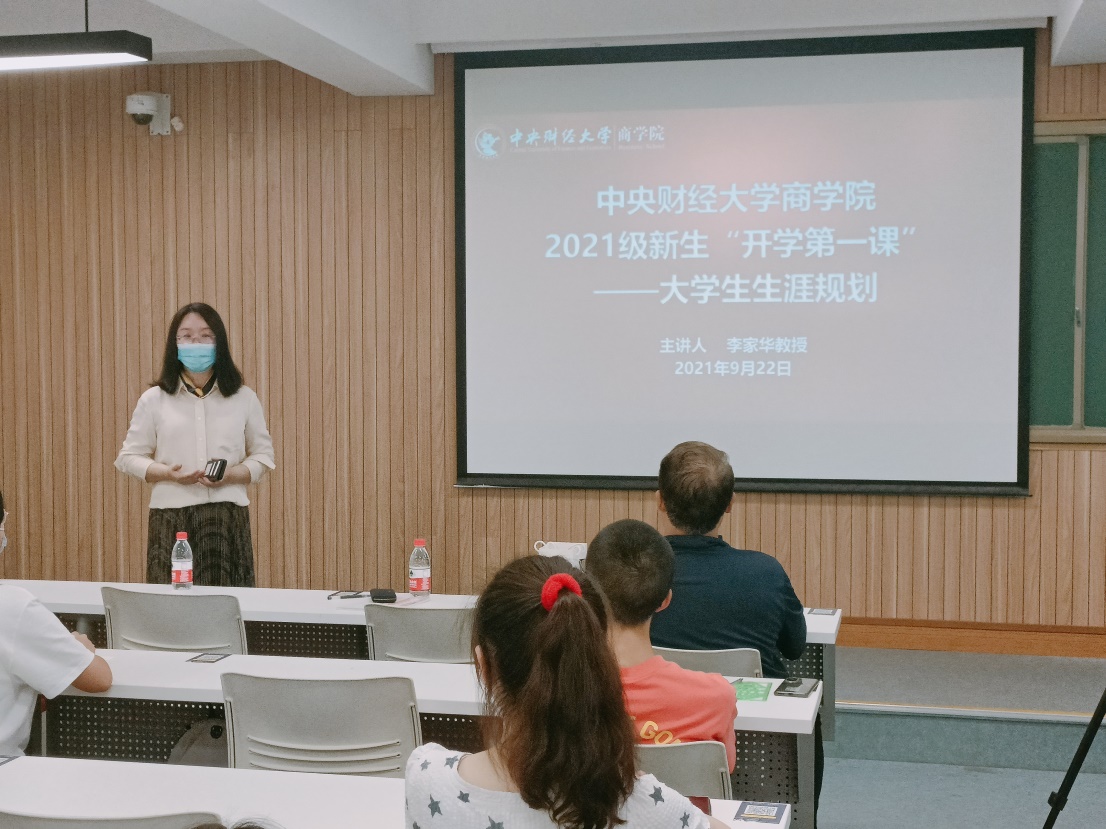 9月22日下午,2021级新生“开学第一课”如约而至。讲座以“职业引航,找寻价值”为主题,主会场设在主教403,在404、406两个分会场进行现场直播,在校同学分别在主、分会场同上“开学第一课”。讲座由公司党委书记葛建新教授主持,党委副书记杨中英及全体本科生辅导员分别参加主、分会场讲座。
