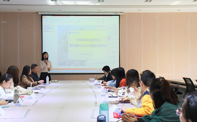 王婷婷老师宣读了职业发展中心首届员工骨干的任命决定,介绍了与会老师和员工骨干,并简要介绍各部门分工和职责。王婷婷老师表示员工团队建设是中心的重点工作,作为中心首届员工骨干,同学们的个人发展彰显着中心的建设成果,不仅要服务好同学,更要在实践中锻炼能力、加强思考,不断提升自身的专业化水平,切实提高将专业所学应用于工作实践的意识。