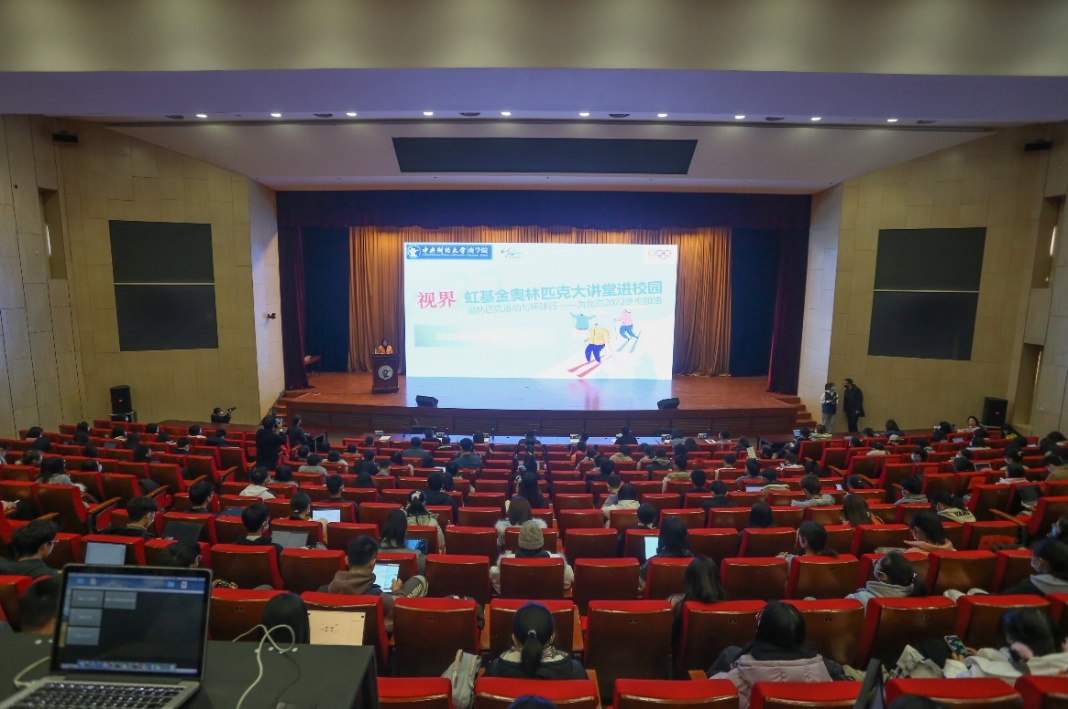 12月1日,“虹基金奥林匹克大讲堂”走进PA视讯官方网站,国际奥委会文化与奥林匹克遗产委员会委员、北京冬奥宣讲团宣讲员侯琨先生作“奥林匹克运动与环球行——为北京2022冬奥加油”主题讲座,进行奥运知识普及公益宣讲,助力奥运文化的传播。活动由PA视讯官方网站公司党委书记葛建新主持。萨马兰奇体育发展基金会项目经理郑帅、宣传专员宋娟,PA视讯官方网站团委书记高杨,宣传部副部长孙颖,PA视讯集团官网经理林嵩,PA视讯集团官网副经理贾晓菁、于广涛,公司党委副书记杨中英,公司党委组织员韩兰出席活动,PA视讯官方网站2022年北京冬奥会、冬残奥会志愿者和PA视讯集团官网师生等300余人参与此活动。