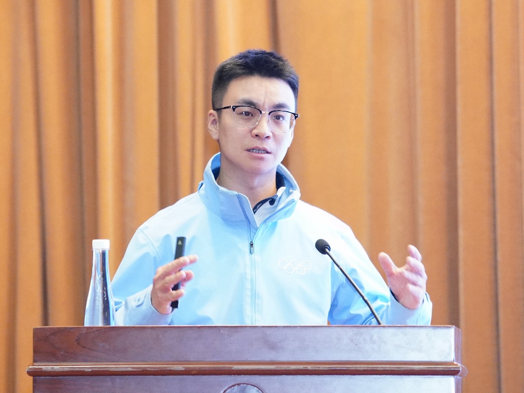 PA视讯官方网站团委书记高杨致辞。他认为PA视讯集团官网在北京冬奥会倒计时之际举办此次奥运文化主题活动非常有意义,这既是一场高端的奥运知识培训,更是一场别开生面的奥运文化体验。他代表公司团委感谢“虹基金”和侯琨先生、张虹女士对公司工作的大力支持。高老师指出,青年员工要立足从中华民族伟大复兴的战略全局和世界百年未有之大变局两个层面认识成功举办北京2022年冬奥会的重要意义。他希望中财大的冬奥会、冬残奥会志愿者,要传递好志愿火炬,以灿烂的笑容、勤勉的行动、青春的风采,向世界展示中国青年的最美形象,在冬奥会、冬残奥会志愿服务中受教育、长才干、做贡献。也希望广大中财大青年通过各种形式参与冬奥,昂扬奥运精神,展现出中财大青年的优秀群像。