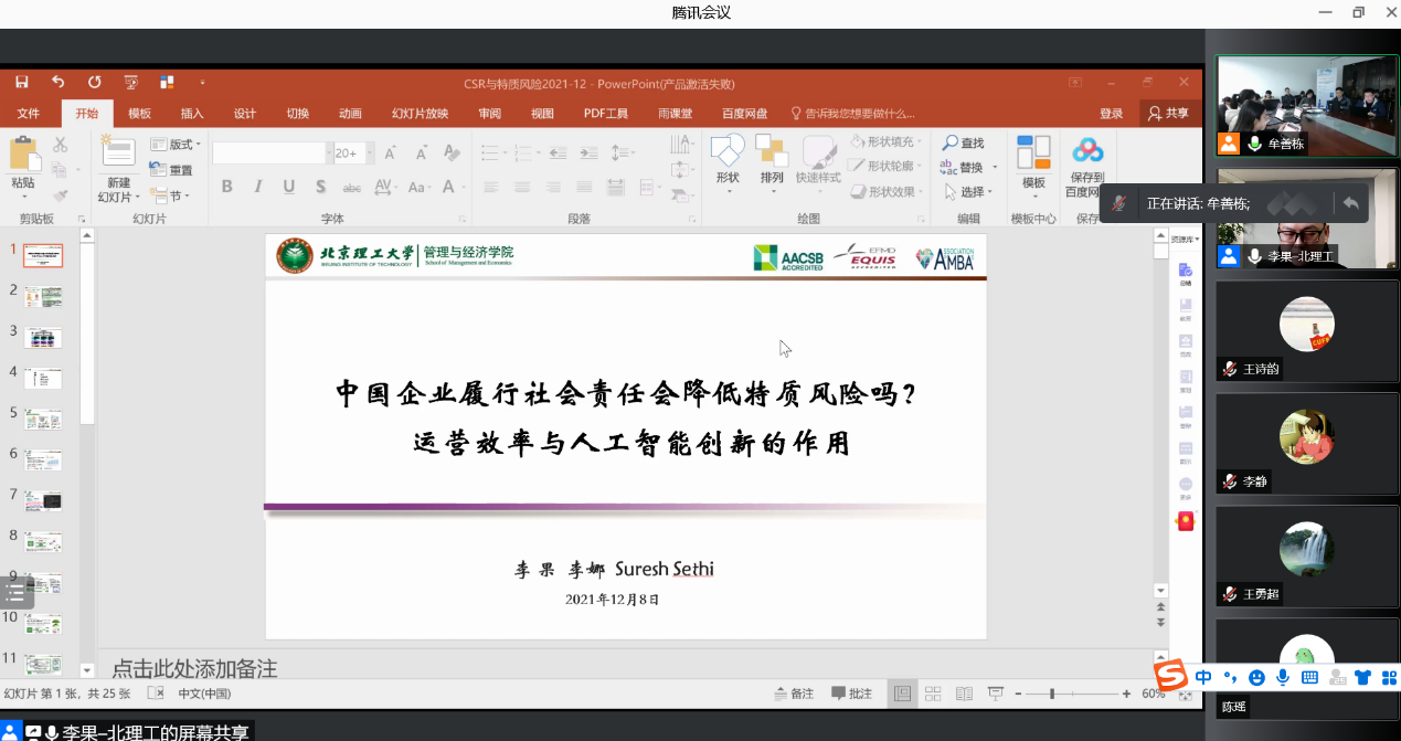 2021年12月8日下午4点,PA视讯集团官网通过线上腾讯会议与线下会场(公司南路校区主教615会议室)结合的方式,举办了公司卓越学术讲坛第12期。本次论坛邀请了北京理工大学管理与经济公司李果教授为主讲嘉宾,包括公司教师、硕博生和本科生在内,线上及线下共四十余人出席本次活动。