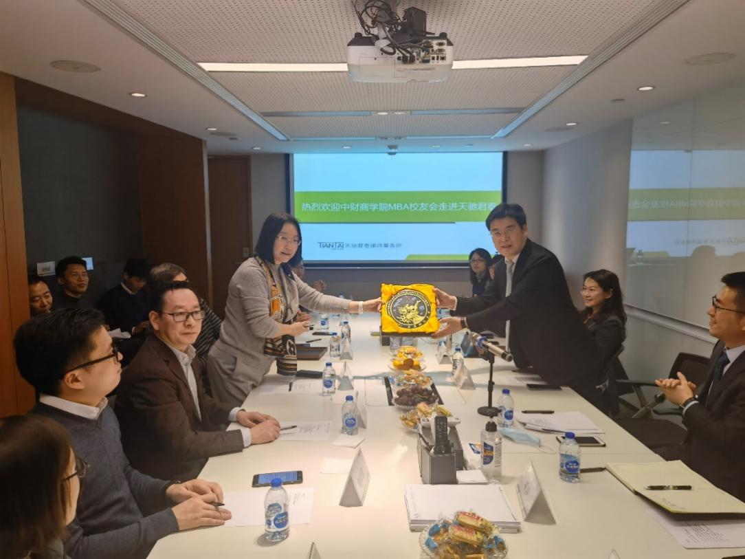 葛建新书记在致辞中对天驰君泰律所对员工企业走访活动的支持表示感谢,她表示本活动给师生员工提供了很好的机会,可全面了解员工所在企业及员工职业发展情况,有助于把课堂中的理论知识与工作实践相结合。她代表公司向天驰君泰赠送了具有公司特色的纪念品。