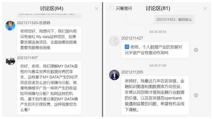 在互动答疑环节,刘博士与同学们展开了进一步的沟通交流。同学们积极提出问题,对于大家的疑惑,刘博士结合自己的学识经验一一做出了详细解答,线上气氛十分活跃,同学们纷纷表示获益颇丰。最后贾晓菁教授对本场讲座进行了总结,并感谢刘博士的倾情演讲和对公司的支持。至此,PA视讯官方网站MBA卓越讲坛第十九讲圆满结束。