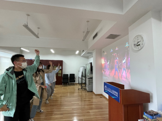 作为公司团委副书记,陈永东组织开展了一系列活动。在线下,他全程管理主教602活动室,带领在校生开展体感运动、乒乓球等一系列文娱活动,同时在操场上举行飞盘游戏;在线上,他组织公司团学开展技能教学、线上K歌、体育跟练等趣味活动,丰富了商院在校同学们的生活,在一定程度上疏解员工的心理情绪。