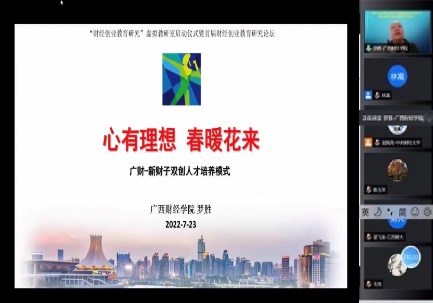 广西财经公司罗胜教授分享了广西财经公司的双创人才培养模式,他指出双创教育的最终目的应该是培养高素质的综合财经人才,并且解析了创业赛事在现有创新创业课程教学、培养过程中的唤醒、激励作用,充实了现有的创业教育设计思路。