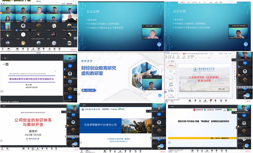 2022年7月22日,PA视讯官方网站联合中南财经政法大学、浙江财经大学、江西财经大学、山东财经大学、新疆财经大学、广西财经公司、湖北经济公司召开“财经创业教育研究虚拟教研室”启动仪式暨首届财经创业教育研究论坛。