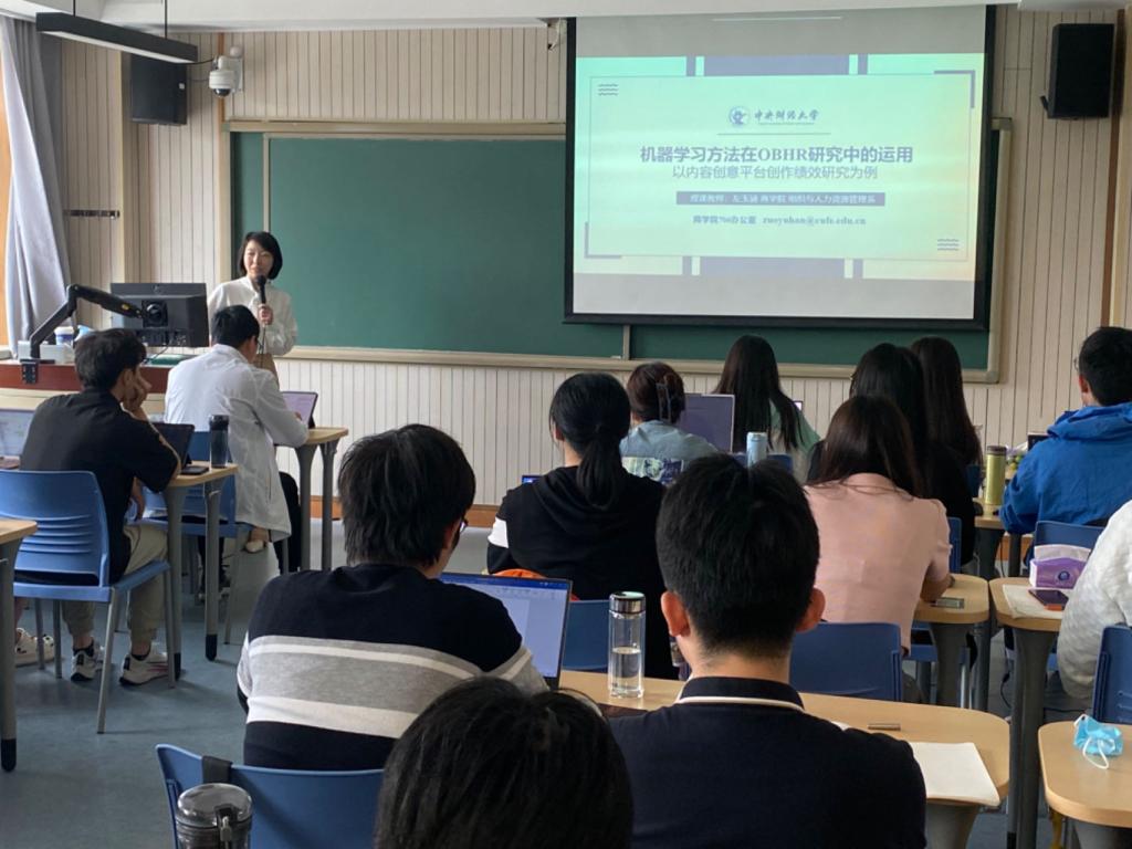 陈金亮副经理在5月6日的学术讲座中,结合自己在供应链管理领域的研究,详细介绍了如何开展一项学术研究,从问题提出到研究设计和论文投稿。高震男老师在5月13日的讲座中,以自己在金融领域的研究为例,让同学们们在二手数据及其应用领域有了更深入的认识。李加鹏老师在同一天的讲座中,解释了自己在研究设计时的思路,让大家了解到质性研究的魅力,以及如何选择匹配研究问题的方法。魏闯老师在5月20日的讲座中,着重介绍了实验法在行为科学研究中应用现状,开拓了同学们的研究视野。左玉涵老师在同一天的讲座中,详细介绍了大数据技术和机器学习方法在组织管理领域中的使用,她以内容创意平台场景为例,为同学们讲解了具体的研究案例,并为他们提供了当前研究中的新思路。在讲座后半程的提问环节中,同学们围绕讲座主题进行了提问,各位老师就同学们关心的问题进行了解答。