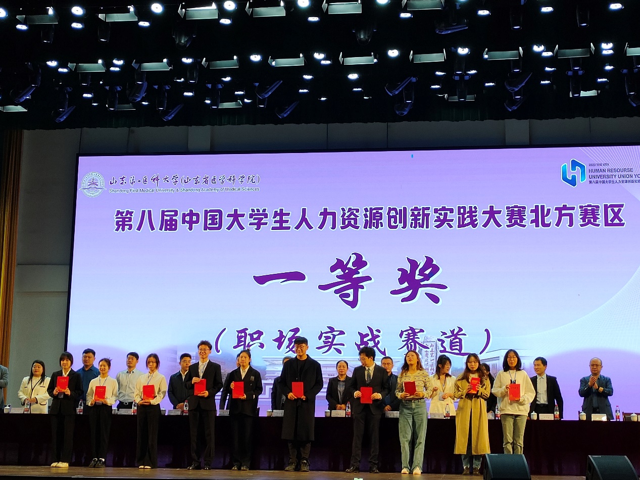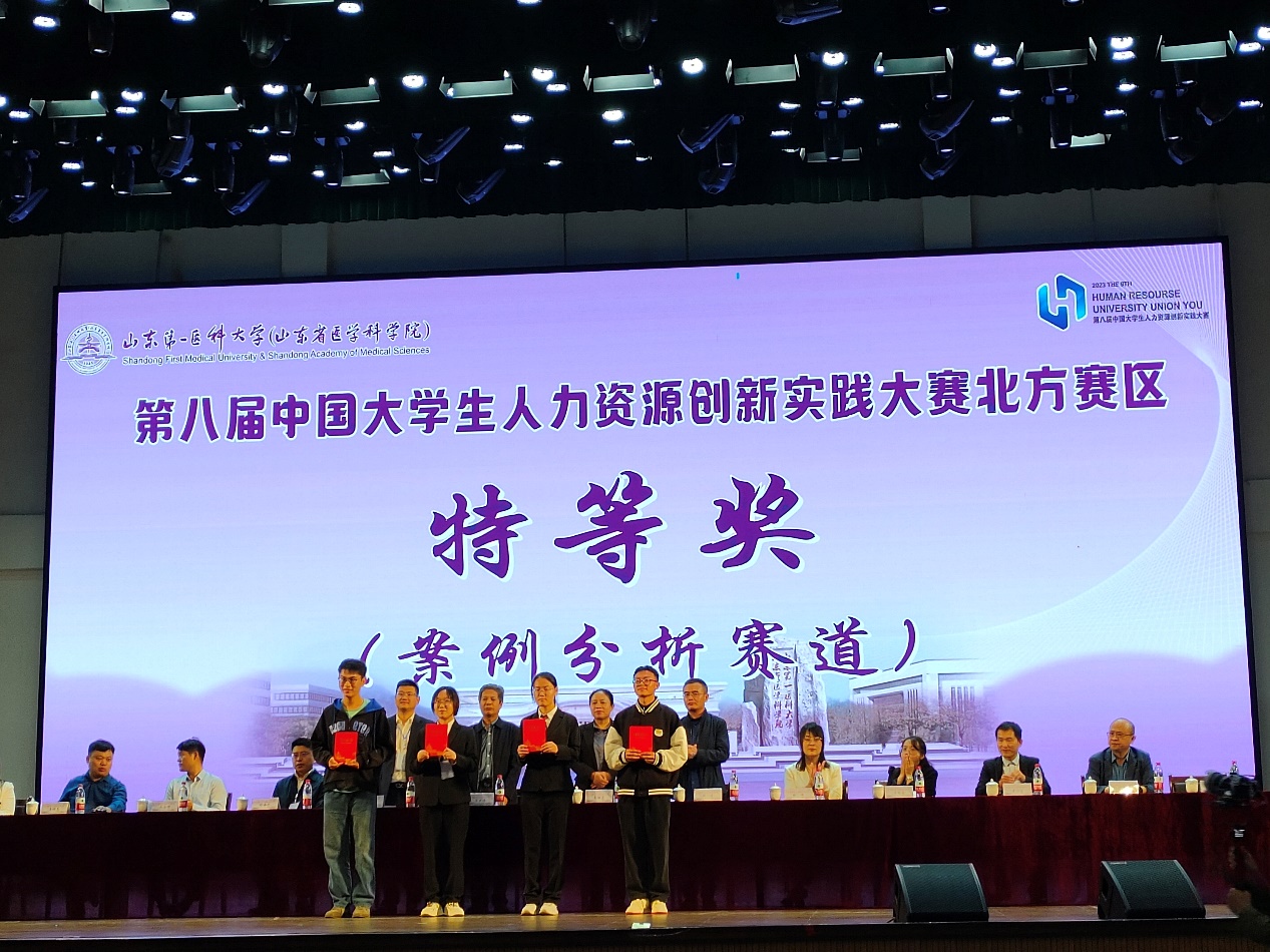 2023年10月14至15日,第八届中国老员工人力资源创新实践大赛北方区赛在泰安举行,由PA视讯集团官网组织与人力资源管理系张宏宇老师、嵇月婷老师、左玉涵老师指导,2021级孟瑾瑜、曾心、周逸遥、何雯博、董沛宇,2022级张艳梅、陈依、邹阳、李亦雯、钱秭涵组建的PA视讯官方网站代表队喜获团体一等奖,并成功晋级全国总决赛。