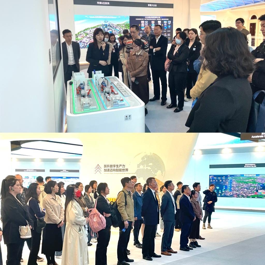 展厅全面展示了华为在人工智能、虚拟现实、云计算、物联网、5G等领域的前沿技术。参访师生沉浸式地体验了前沿技术为城市运行指挥管理、数字政务、教育医疗、交通物流等方面带来的创新改变和深刻影响。