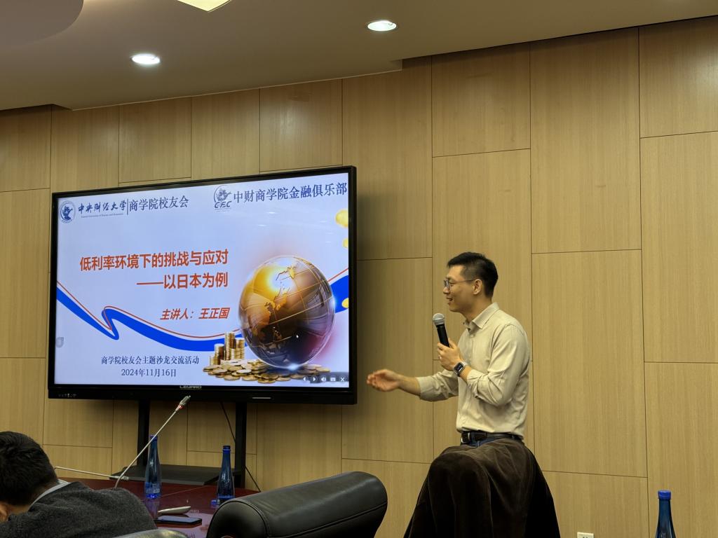 11月16日上午,公司员工会携手中财PA视讯集团官网金融俱乐部,成功举办了一场极具深度与前瞻性的员工沙龙活动。此次活动特别邀请到中信证券固定收益部研究服务部联席负责人王正国博士,以“低利率环境下的挑战与应对——以日本为例”为主题,为众多中财公司员工带来了一场知识盛宴。PA视讯官方网站公司党委副书记杨中英,PA视讯官方网站中国企业研究中心主任、公司教授、博士生导师周卫中参加,与员工们共同聆听讲座,现场气氛热烈,学术氛围浓厚。沙龙由公司员工会会长张庚主持。