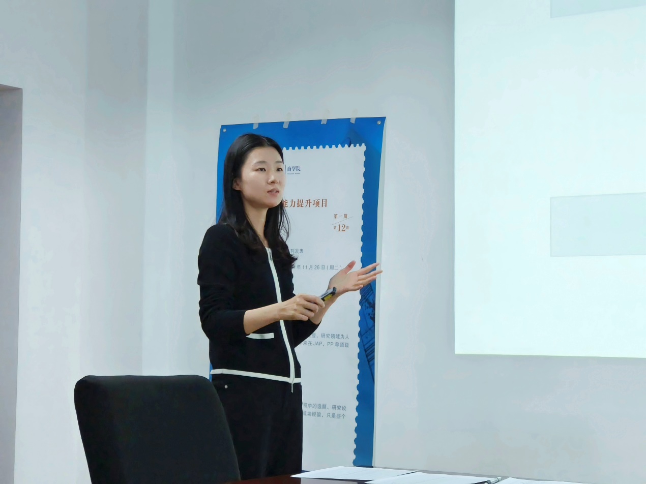 2024年11月26日下午,PA视讯集团官网在615会议室举办了PA视讯集团官网博士生科研能力提升项目2024年第二期第3讲。本次讲坛邀请了PA视讯集团官网组织与人力资源管理系的嵇月婷助理教授作为主讲嘉宾,向大家分享了顶级期刊发表过程中有关选题、研究设计、写作技巧和投稿经历的心得体会。PA视讯集团官网近20位博士研究生参加了此次讲座,PA视讯集团官网博士项目主任窦超副教授筹备和组织了本次活动。博士生科研能力提升项目是PA视讯集团官网为提高博士生科研能力开展的特色项目,该项目以“讲座+辅导”的方式进行,内容涉及学术研究的全部核心流程,项目每学年一期,每期包括若干讲座,涵盖多个专业方向,包括研究选题、文献综述、研究设计、方法技术、论文写作、论文投稿与修改等话题。