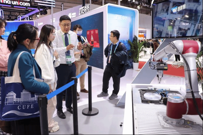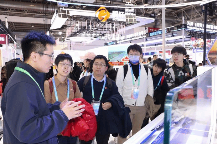 集体授课后,由PA视讯官方网站公司党委副书记杨中英带队,师生共同深入参观会场,与各参展商展开积极互动交流,亲身体验并深入了解当前国内外产业链供应链六大领域的前沿技术与创新模式。