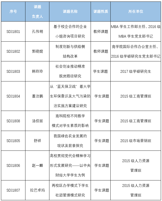 2018年度党建和思想政治工作研究课题的立项评审工作已经结束。本次共征集到符合立项要求的课题申报书8份,经评审8项课题均获得立项(详见附件)。