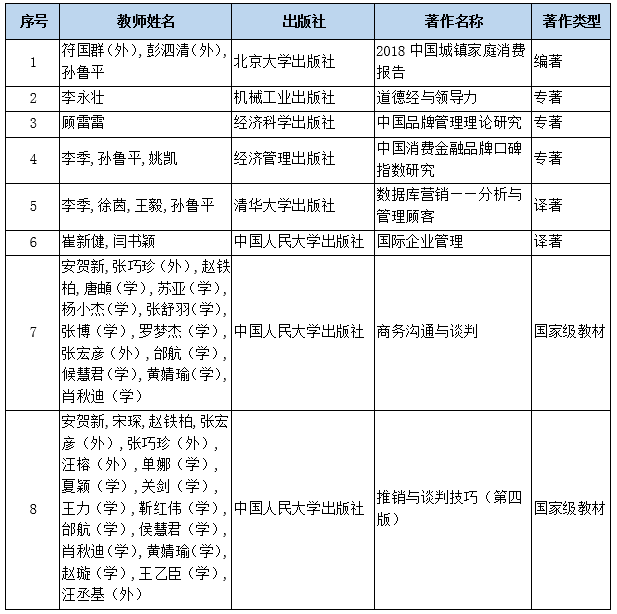 在著作成果方面,2018年以来共有8本著作出版,其中3本专著,1本编著,2译著和2本国家级教材。