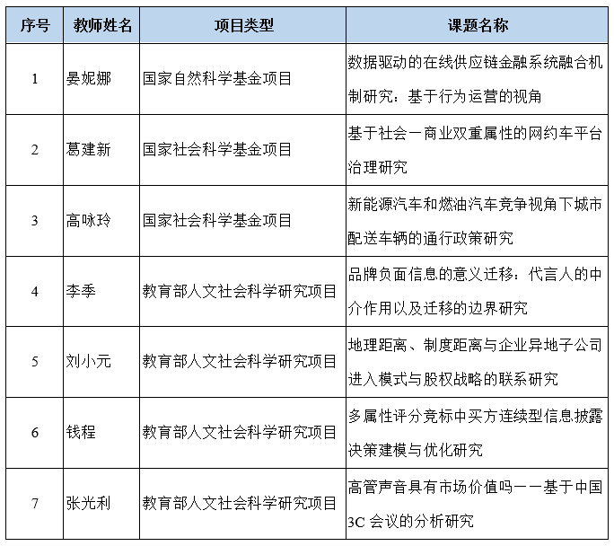 2018年以来,公司教师积极申报国社科、国自科以及教育人文社科项目。在目前公布的立项名单中,公司教师共成功申报3项国家级课题和4项省部级课题。