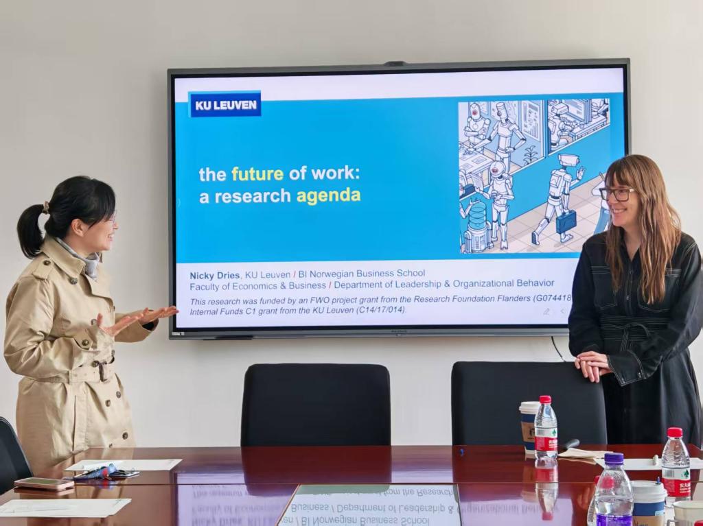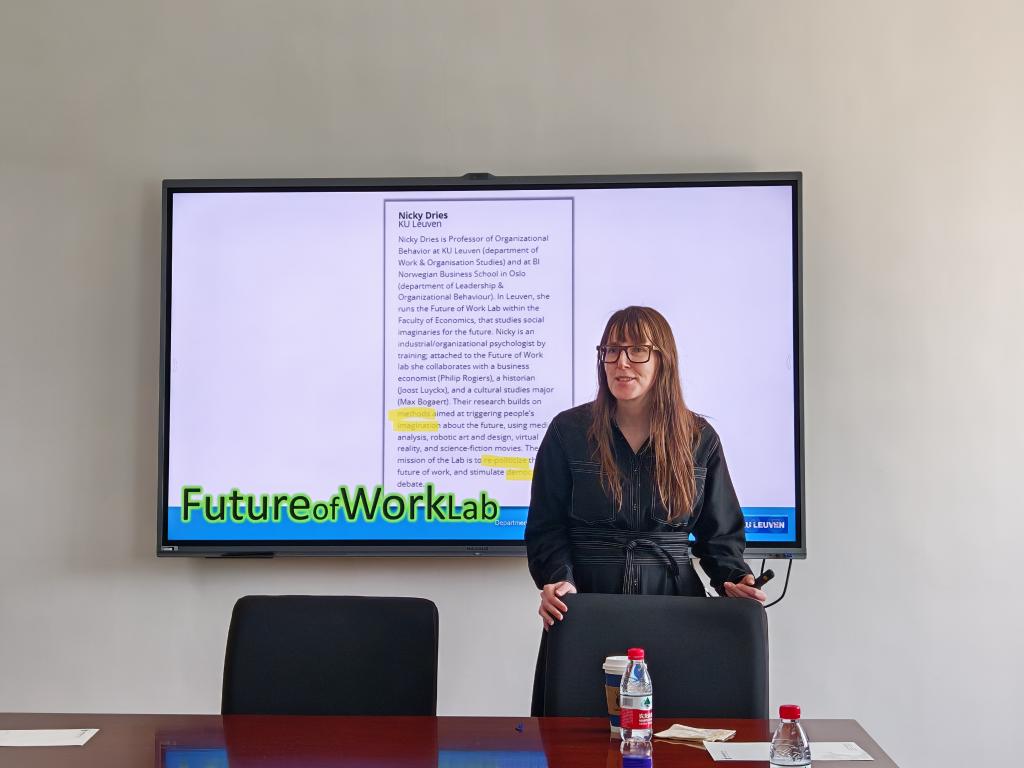 会议由PA视讯集团官网组织与人力资源管理系系主任张宏宇副教授主持。在讲座正式开始前,张宏宇老师详细介绍了Nicky Dries教授的学术背景。Nicky Dries教授现任比利时鲁汶大学工作与组织研究系及挪威BIPA视讯集团官网领导力与组织行为系正教授。在鲁汶大学,她还担任“未来工作实验室”布莱特学者(2012年起)。截至目前,她已发表60余篇国际同行评审论文、2部专著及20篇书籍章节。在学术圈外,她积极参与科学传播工作,定期在《哈佛商业评论》《福布斯》等商业媒体发表文章及评论,参与播客录制,并曾出演探讨颠覆性技术对劳动力市场影响的纪录片《数字困境》。2021年,她从逾千名候选人中脱颖而出,入选比利时首届“40 under 40”榜单,成为代表国家未来社会领袖的40位杰出青年之一。目前,Nicky Dries教授担任《Journal of Management》副主编,并在《人力资源管理杂志》(HRMJ)、《欧洲工作与组织心理学杂志》(EJWOP)等多个期刊编委会任职。同时,她长期担任比利时弗兰德研究基金会(FWO)、荷兰科学研究组织(NWO)、芬兰研究委员会及欧盟委员会等国家级与欧洲科研资助机构的项目评审专家。
