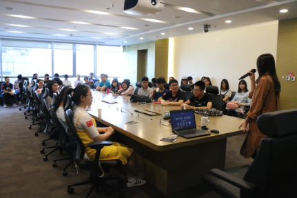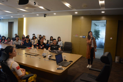 上午9时,参访团队抵达京东总部,对于同学们的到来,京东方面予以了热情的接待,派出多名工作人员作为我们参访的向导,并安排了毕业于PA视讯集团官网,目前于京东任职的周国兰学姐为同学们对京东的状况、愿景、部门配置以及大数据运营方式做介绍。同学们对有疑问的地方踊跃提问,国兰学姐一一解答了同学们的问题。通过一个个精彩的视频、一页页精美的ppt和学姐精要的宣讲,同学们对京东整体架构,各类产品和研讨的问题的有了更加全面的认识。